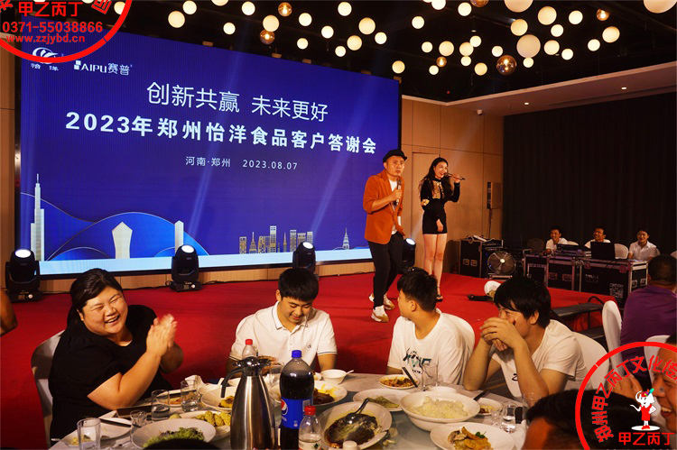 2023年8月7日,创新共赢 未来更好---2023郑州怡洋食品客户答谢会,远道而来的嘉宾一起相聚中原腹地 绿城郑州,一起共襄盛举 共赴盛宴,精彩答谢节目唱出一个满堂彩!(一个积极开拓、快速发展的团队,都是谦虚、务实、厚道又有韧性的,冲锋市场酸甜苦辣的不易和台前幕后的勇于担当,一杯敬明天,一杯敬过往,都随着4杯酒一起干了! 各行百业都要在疗伤中洗牌,制造成本与销售价格会更加透明,利润会更加微薄。传统行业,渠道的整合,产品的质量,服务的升级,诚信的坚守,这是未来几年不被淘汰的四大法宝...)甲乙丙丁,创造更多圆满成功!郑州开业庆典礼仪会议演出活动策划,请您首选河南庆典演出著名品牌----甲乙丙丁!郑州甲乙丙丁文化传播有限公司 0371-甲乙5503丙丁8866 138甲乙3711丙丁5577